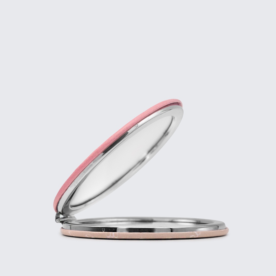 Our compact mirror is beautifully constructed with a faux-leather encasement, pink on one side and rich cream on the other. With a sleek design, it features an invisible magnetic clasp that keeps it shut securely in your bag.